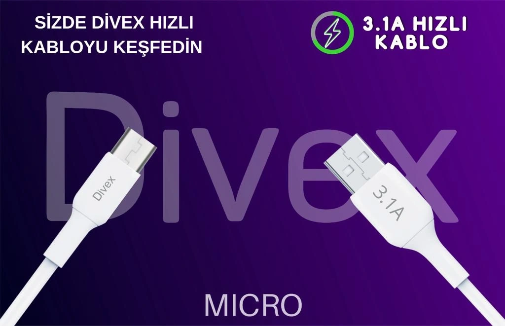 Divex 3.1A Micro USB Hızlı Şarj Data Kablosu, günlük dijital hayatınızı kolaylaştırmak için tasarlanmış yüksek performanslı bir çözümdür. Dayanıklı yapısı ve 3.1A yüksek akım kapasitesi ile cihazlarınız için ideal bir şarj ve veri transferi seçeneği sunar.