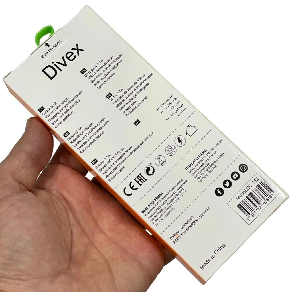 Divex 31A Type-C Hızlı Şarj Data Kablosu DC-112, modern cihazlarınızın şarj ve veri aktarımı ihtiyaçlarını karşılamak için tasarlanmış yüksek kaliteli bir kablodur. Güçlü ve dayanıklı yapısıyla günlük kullanımda uzun ömür sunar.