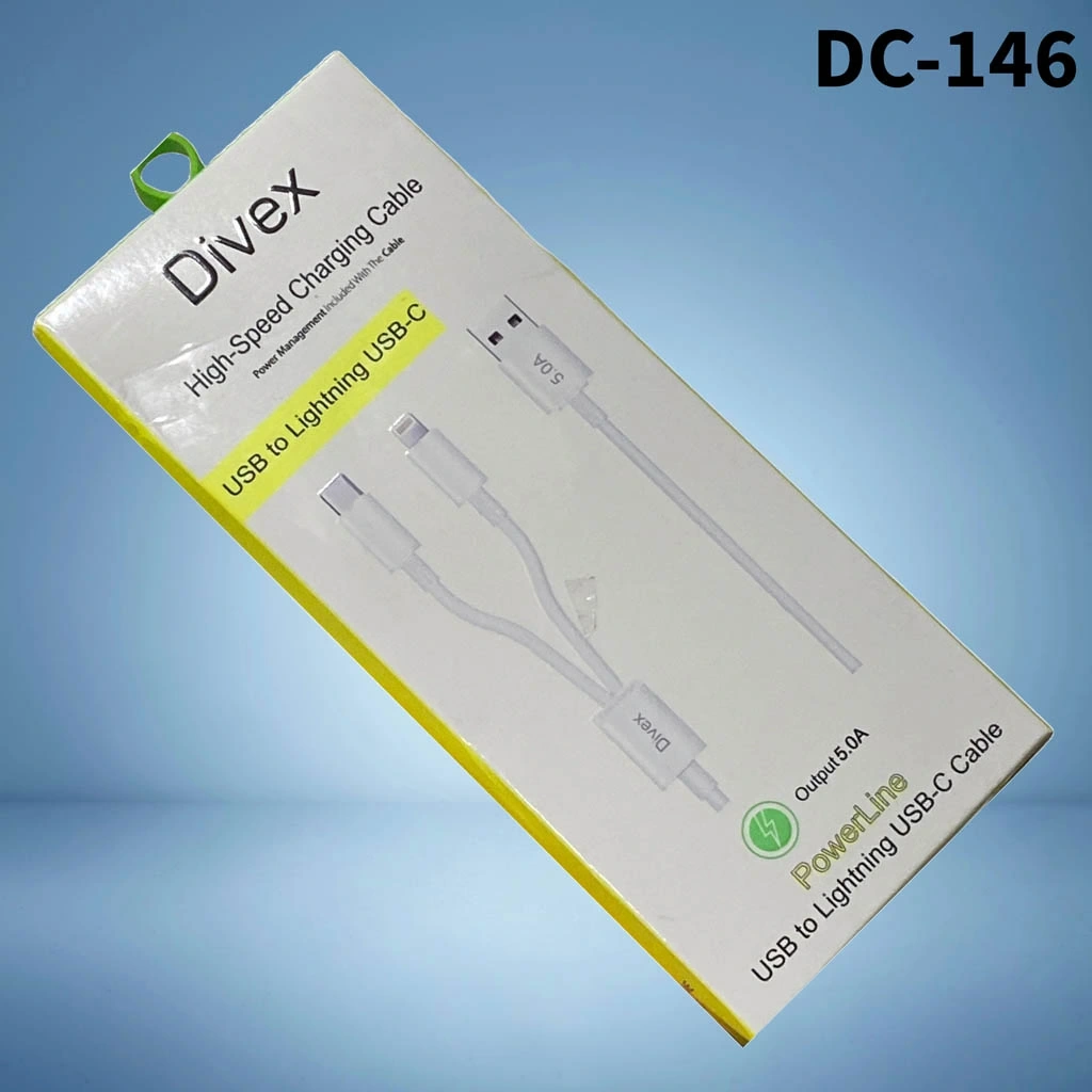 DIVEX 5.0A Type-C Lightning Yüksek Hızlı Şarj Kablosu, Apple cihazlarınız için tasarlanmış premium kalitede bir şarj çözümüdür. 5.0A yüksek amper kapasitesi ile iPhone ve iPad'lerinizi maksimum hızda şarj etmenizi sağlar.