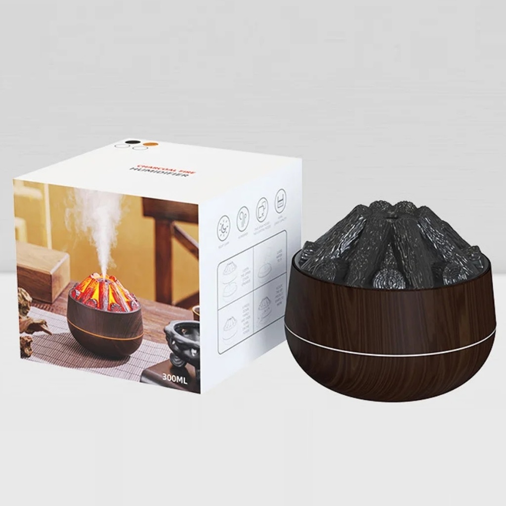 Charcoal Fire Design Humidifier, dekoratif köz alev efektiyle ortamınıza sıcak bir ambiyans kazandırırken, aynı anda ultrasonik buhar teknolojisiyle havayı nemlendirir. Modern tasarımıyla masa üstü kullanım için idealdir. Ayrıca aromaterapi desteğiyle esansiyel yağlar kullanarak yaşam alanınızı tazeler.