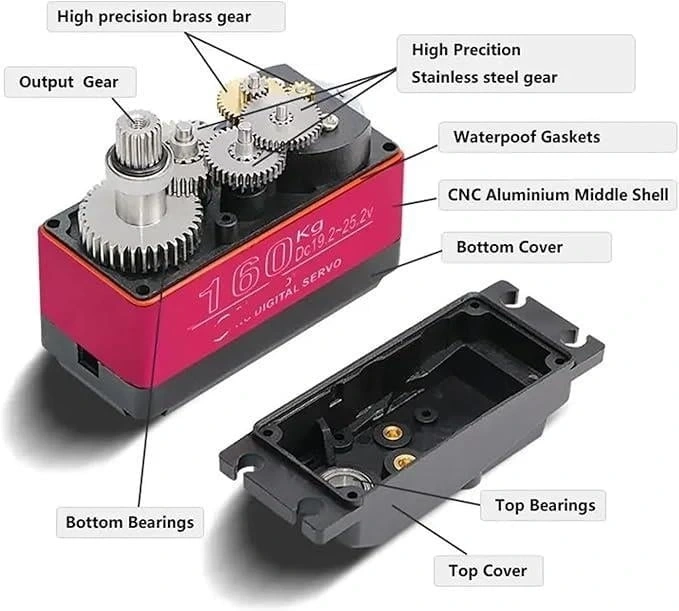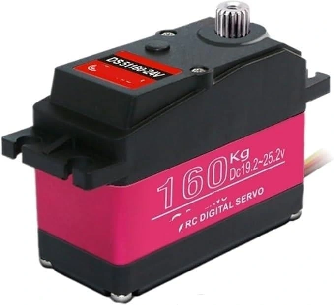 24V Servo 160Kg 5B 1/5 DS51160 Yüksek Torklu Dijital Servo (DS51160-24V-180), yüksek tork gerektiren uygulamalar için tasarlanmış dijital bir servodur. Özellikle 1/5 ölçekli RC araçlar, robotik projeler ve endüstriyel otomasyon sistemlerinde kullanılır.
