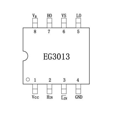 EG3013, N-kanal MOSFET\\\'ler ve IGBT\\\'ler için tasarlanmış uygun maliyetli bir yarım köprü sürücü IC\\\'dir. EG3013, düşük ve yüksek taraf sürücüler için birleşik mantık girişleri, FET\\\'leri korumak için sabit ölü zaman, çapraz iletim önleme mantığı, yüksek Voltaj seviyesi kaydırıcı, gürültü filtresi gelişmiş bağışıklık içerir ve harici N-kanal MOSFET\\\'ler için yüksek akım kapasitesi sağlar, fırçasız motor sürücüleri için uygulama.