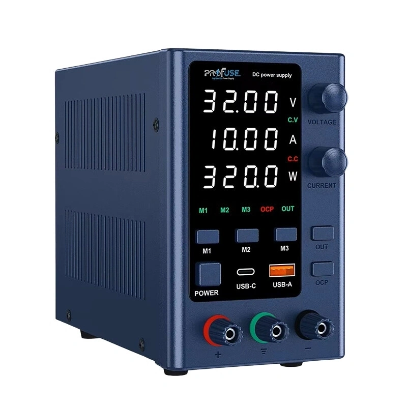 EPS3210 32V 10A Ayarlanabilir DC Güç Kaynağı EPS3210, 0-32V arası 10A'e kadar çıkış alabileceğiniz yüksek hassasiyetli bir DC güç kaynağıdır. Ürün üzerinde voltaj ve akım ayarı yapabilmenize olanak sağlayan birer adet ayar enkoderleri bulunmaktadır. Ayar yapmaya olanak sağlayan bu enkoderlerin üzerine basıldığında ayar hassasiyeti değişebilmektedir. EPS3210 modelinin hafıza özelliği bulunmaktadır. Cihaz üzerinde bulunan M1, M2, M3 tuşları ile ayarladığınız voltaj-amper verisini kaydedebilir, sonrasında kayıtlı olan tuş sayesinde o ayara çabucak erişebilirsiniz. Ürün açık olduğunda doğrudan çıkış vermemektedir. Çıkış vermesi için output tuşuna basılmalıdır. Yeşil ışık yandığında ürün çıkış vermektedir. Ayrıca ürün üzerinde OCP kısa devre aşırı akım koruma tuşu bulunmaktadır. OCP, kısa devre durumlarında aşırı akıma bağlı durumlara karşı koruyan bir fonksiyondur. EPS3210, modern tasarım ve devre yapısı sayesinde eski tip güç kaynaklarına göre daha hafiftir. Ayrıca üzerinde telefon ve benzer 5V cihazları şarj etmeye olanak sağlayan USB ve Type-C çıkış bulunmaktadır. Özellikler: Model: EPS3210 Giriş: 220V AC (priz) Çıkış Gerilimi: 0-32.00V arası Akım: 0-10.00A arası Çözünürlük: 0.01V / 0.001A Doğruluk: 0.5%±20 OVP: Yüksek Gerilim Koruması OCP: Yüksek Akım Koruması OPP: Yüksek Güç Koruması OTP: Yüksek Sıcaklık Koruması SCP: Kısa Devre Koruması Boyut: 90x190x145mm Ağırlık: 1.15kg Ürün İçeriği: EPS3210 Güç Kaynağı AC Güç Kablosu İngilizce Kullanım Kılavuzu 2 Ad Krokodil Prob Kablo.