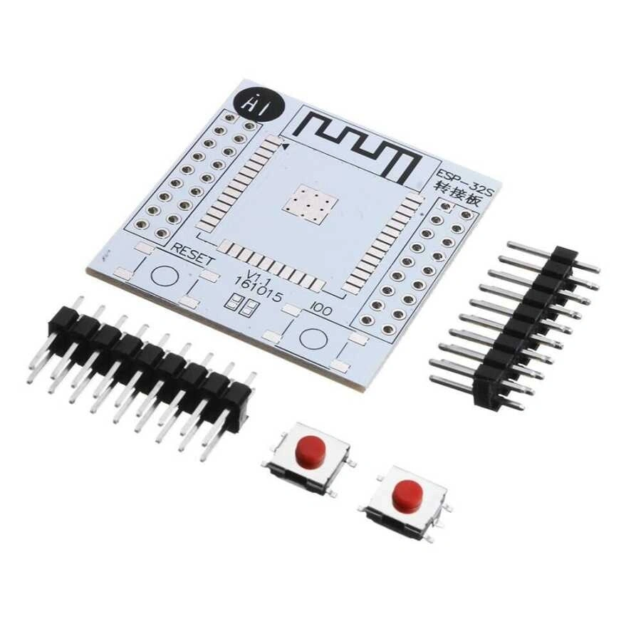 ESP-32S Kablosuz Modül Adaptörü Hızlı ve basit Wifi ve Bluetooth bağlantılarını etkinleştiren ESP-32, ESP-32S ve ESP-WROOM-32 için, kablosuz modülünüzü bağlayabileceğiniz adaptör kartıdır. Dupont kablo teli ile breadboard'a takılabilir. ESP-WROOM-32 / ESP-32 / ESP-32S Wifi / WLAN / Bluetooth Modülü için adaptör kartı, 2 buton ve uygun 2,54 mm pin ile birlikte gönderilir. ESP-32F modülü için uygundur. ESP-32F Adaptör Kartı minimum sistemi, USB seri adaptörüne bağlanmak için sadece 4 hat gerektirir, TXD TX'e bağlanmalıdır, TXD, RX'e bağlanmalıdır. Not: EN pinine 4,7K-20K direnç 3,3V'a bağlamalısınız, 12K önerilir. Hattı ve varsayılan çalışma modunu bağladıktan sonra gücü açın, indirme moduna geçmek için IO0 düğmesine basın ve kodunuzu yaktıktan sonra indirmek için SIFIRLA düğmesine basın. WiFi kartı ESP32 dahil değildir..