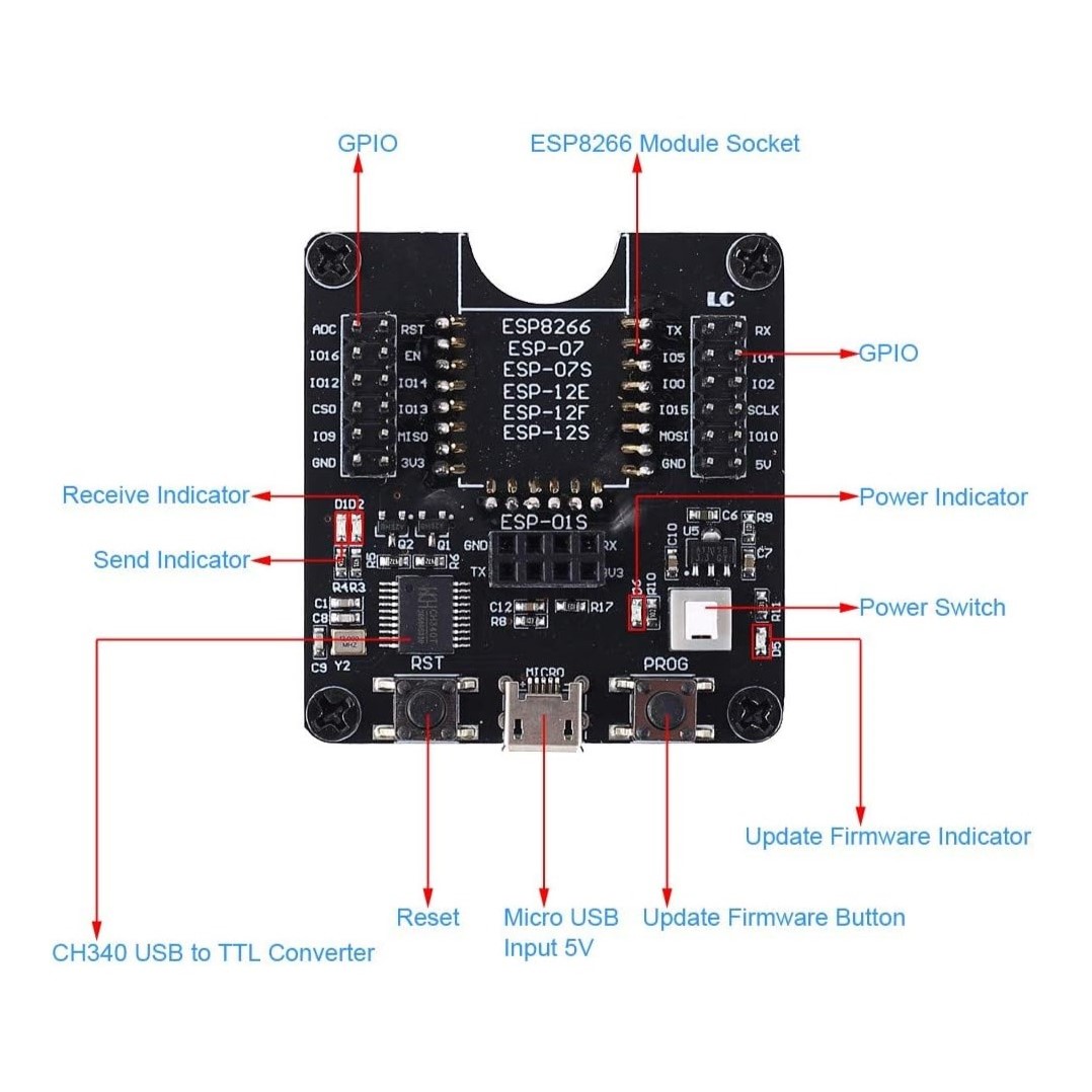 ESP-WROOM-32 Modül Adaptörü, ESP32 mikrodenetleyici çipi ile uyumlu bir geliştirme kartı test kitidir. ESP32, Wi-Fi ve Bluetooth özelliklerine sahip güçlü bir çift çekirdekli işlemci sunar ve IoT (Nesnelerin İnterneti) uygulamaları için mükemmel bir seçenektir. Bu modül adaptörü, ESP-WROOM-32'nin güçlü özelliklerini kullanarak projelerinizi geliştirmenize olanak tanır. Kit, mikrodenetleyici modülünü test etmek, prototipler oluşturmak ve geliştirmek için gerekli tüm bileşenleri içerir.