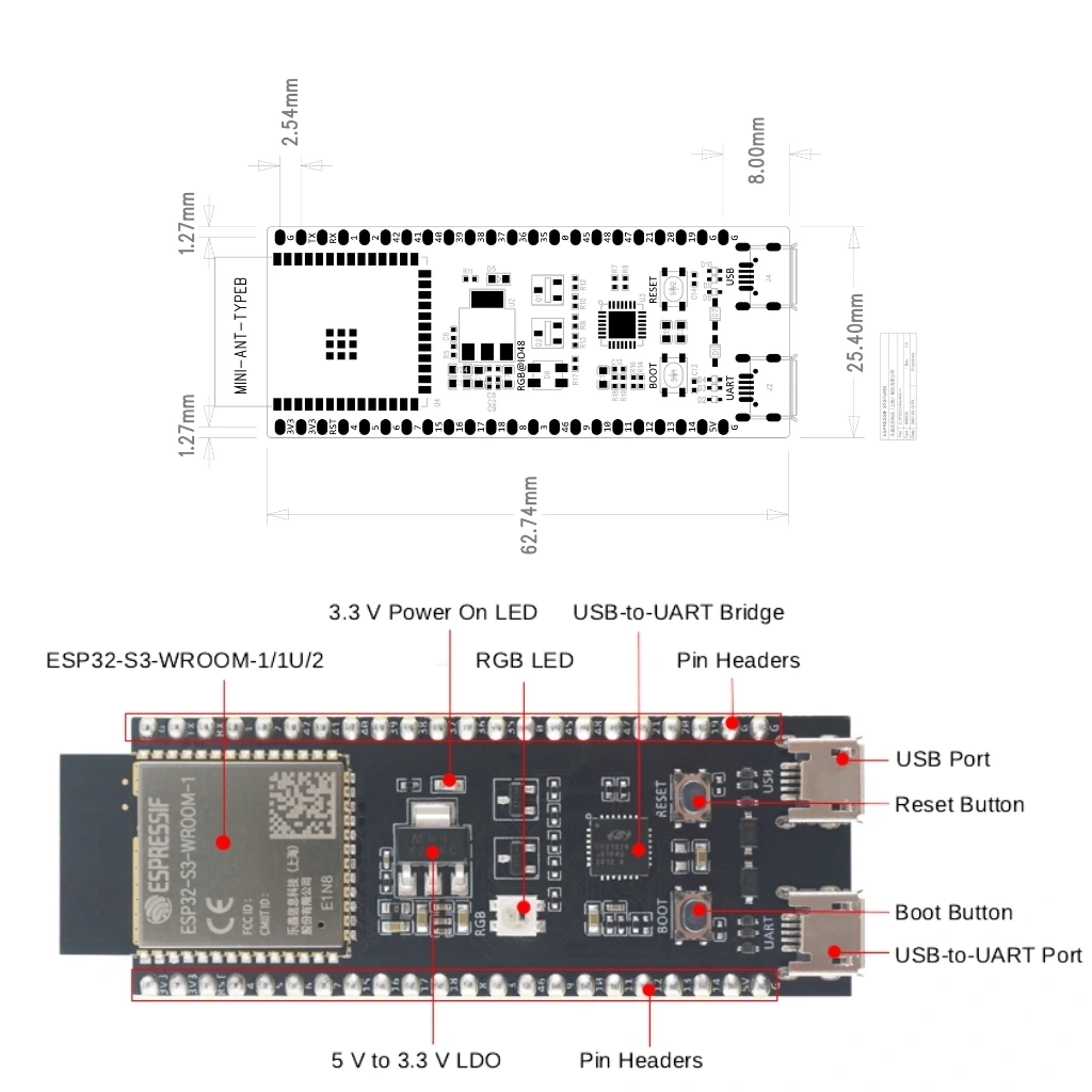 - İşlemci: ESP32-S3 Dual-Core 32-bit LX7 mikrodenetleyici
