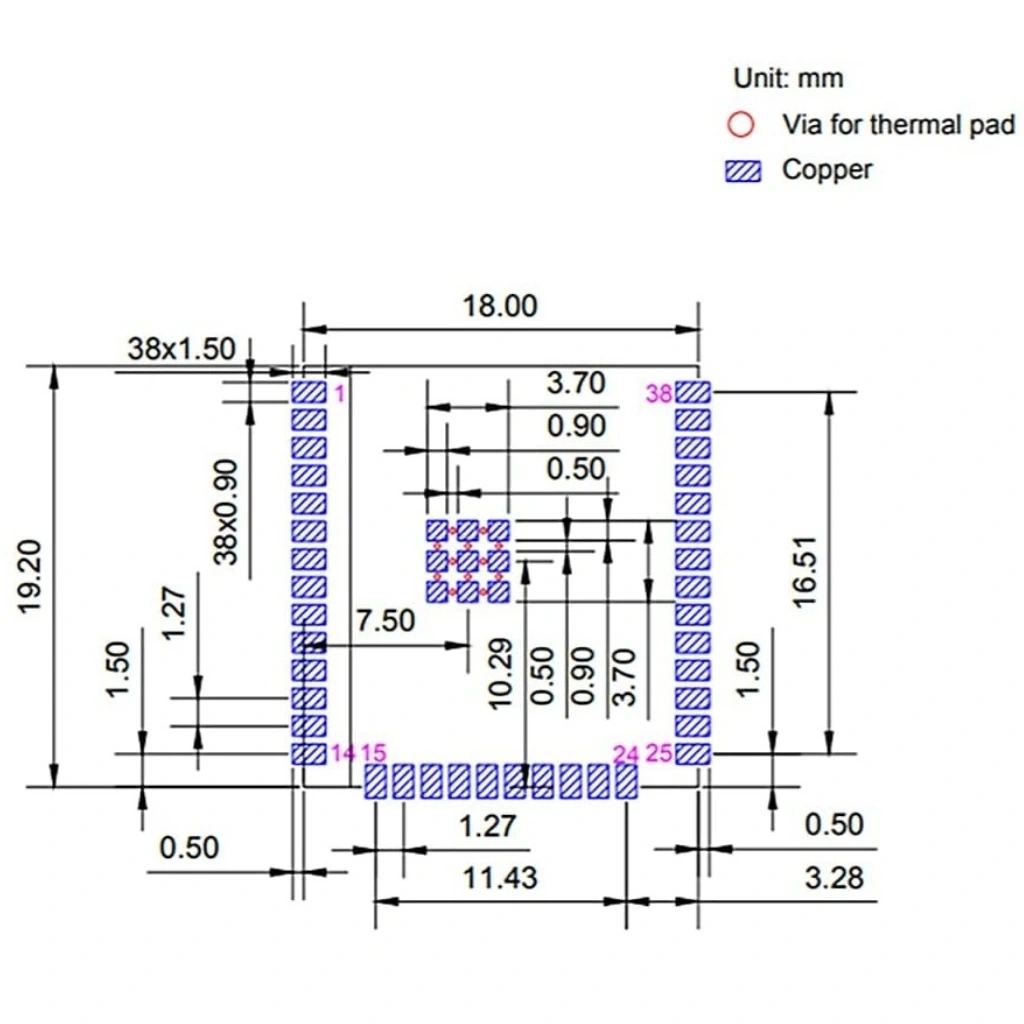 GPIO: 36+1 (Çoklu işlevlere sahip - Dijital G/Ç, Analog Giriş, Çevre Birimi Kontrol).