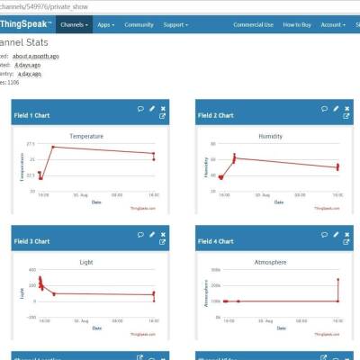 - Sıcaklık, nem, atmosfer basıncı ve aydınlatma verilerinin yoğunluğunu düzenli aralıklarlathingspeak.com\\\'a yükleyin