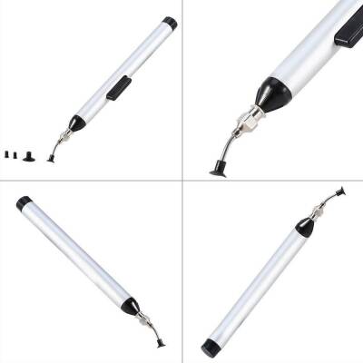 El tipi vakum kalemidir. Ürün içeriğinde 3 adet vakum başlığı bulunmaktadır. Kalem üzerinde bulunan butona basılarak hava dışarı itilir, tutulmak istenen yüzeye vakum ucu yapıştırılır ve düğmeden elimizi çekeriz. Böylece vakum ucu istenen yüzeye yapışır. Arka kısmında bir saklama haznesi bulunmaktadır.
