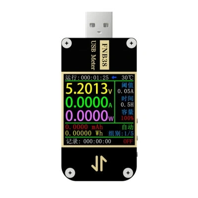 - FNB48P, harici bir 16 bit ADC, PD protokol fiziksel çipi kullanır. USB arayüzleri, cep telefonu şarj cihazları ve U diskleri gibi ürünlerin güç kaynağını veya güç tüketimini ölçebilir. Bu test cihazı, Voltaj, akım, güç, direnç, kapasite, sıcaklık, D+/D- Voltajı vb. gibi çeşitli parametreleri izleyebilir. Ayrıca şarj cihazlarının hızlı şarj protokolünü de test edebilir.