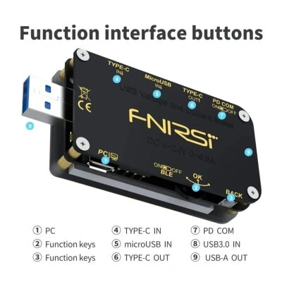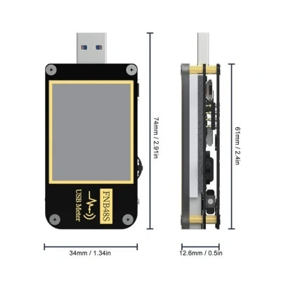 FNB48S Bluetooth USB Test Cihazı - Voltaj ve Akım Ölçer, çok işlevli bir protokol kapasite test aracıdır, 1.77 inç yüksek çözünürlüklü ekranla entegre USB-A, Mikro-USB, tip-C arayüzü, harici 16 bit ADC, PD protokol fiziksel çipi kullanarak, Voltajın, akımın, gücün, kapasitenin, şarj protokolünün, eğri dalga formunun vb. gerçek zamanlı olarak izlenmesini sağlar.