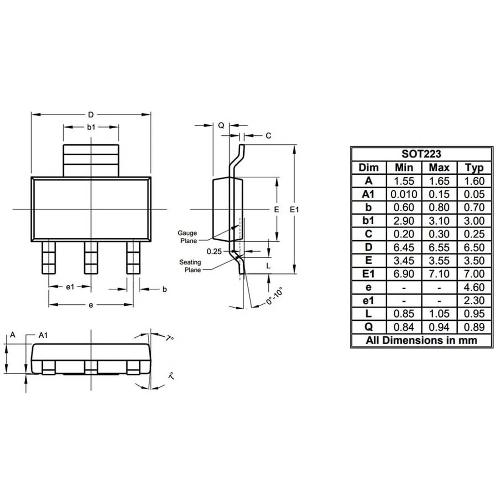 - SOT-223 Paketi: Kompakt boyut ve gelişmiş ısı dağıtımı