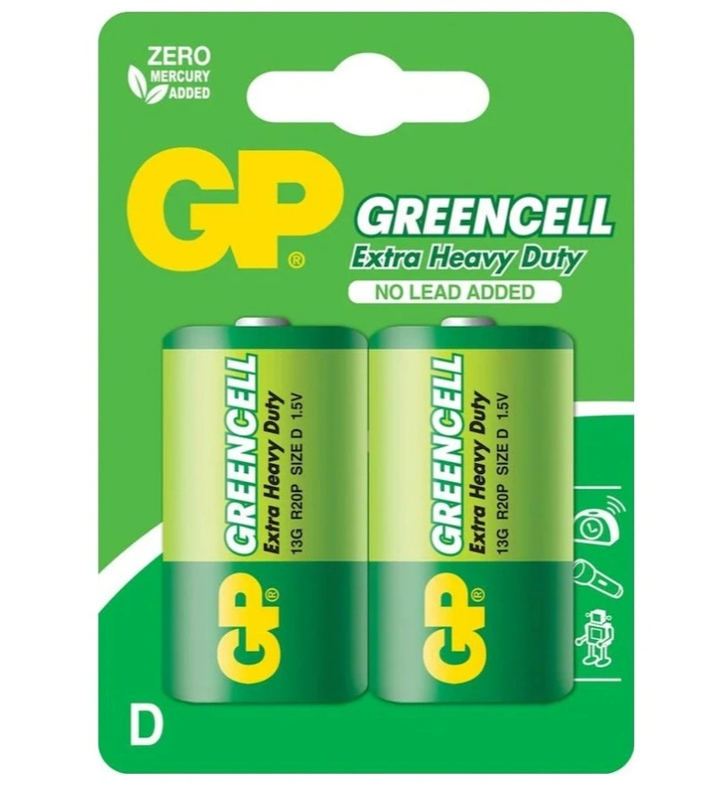 GP GP13G Greencell R20P/1250/D Büyük Boy D Pil 2'li Blister