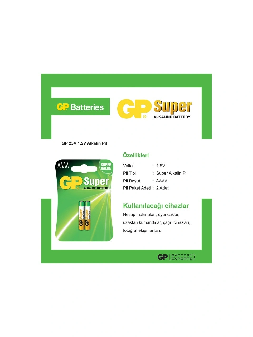 GP 25A LR61 AAAA Super Alkalin Pil, “incenin incesi” olarak bilinen ultra ince tasarımı sayesinde dar pil yuvalarına sahip cihazlarda maksimum verimlilik sunar.