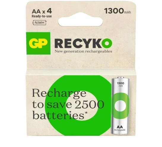 • GP Recyko 1300 mAh 4'lü Şarjlı AA Kalem Pil seti, günlük kullanım için ideal olan güvenilir ve çevre dostu bir enerji çözümüdür.