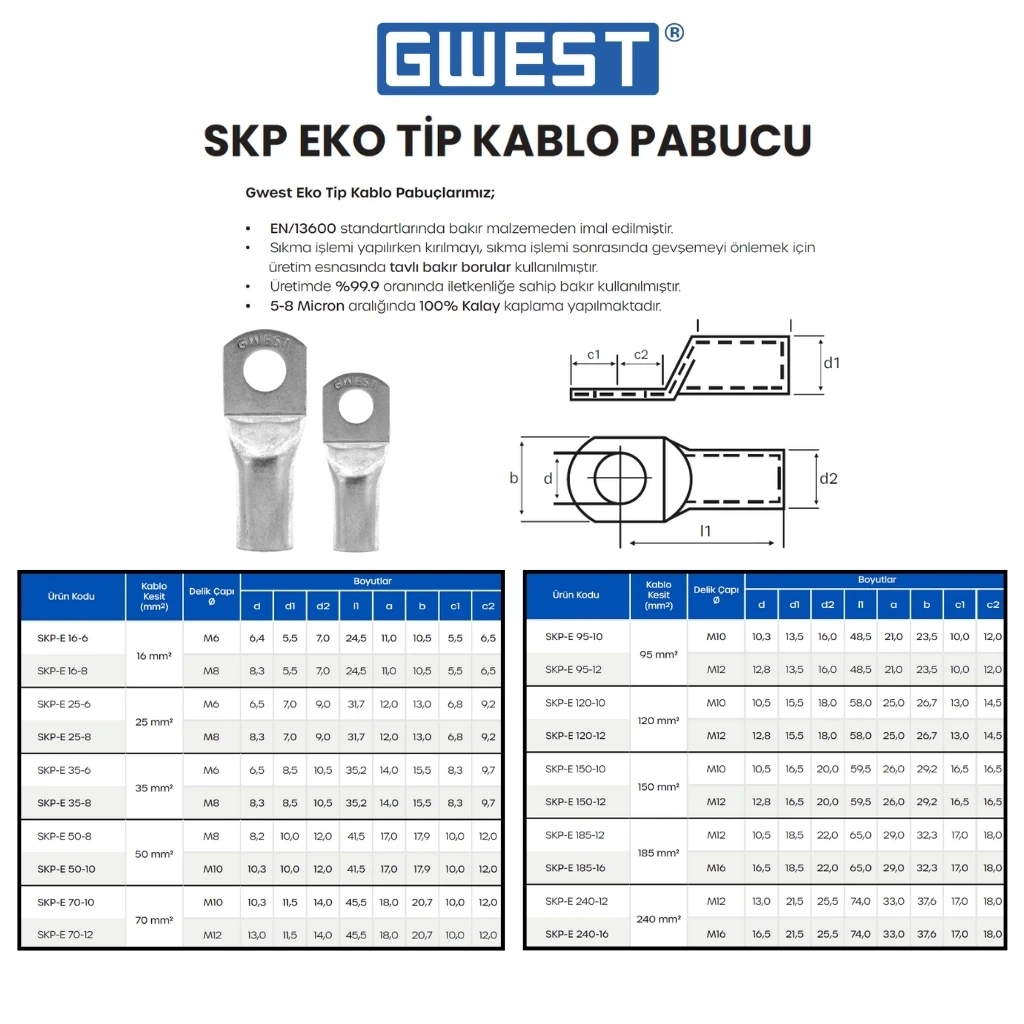 Gwest Ekonomik Tip Sıkmalı Kablo Pabucu SKP-E 35-6 300 Adet