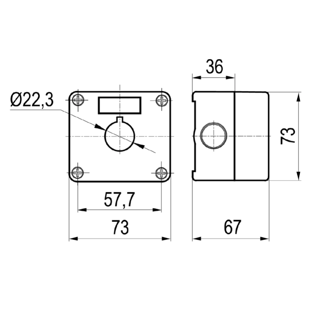 - Standart 22mm çapındaki buton, anahtar ve sinyal lambalarıyla uyumlu