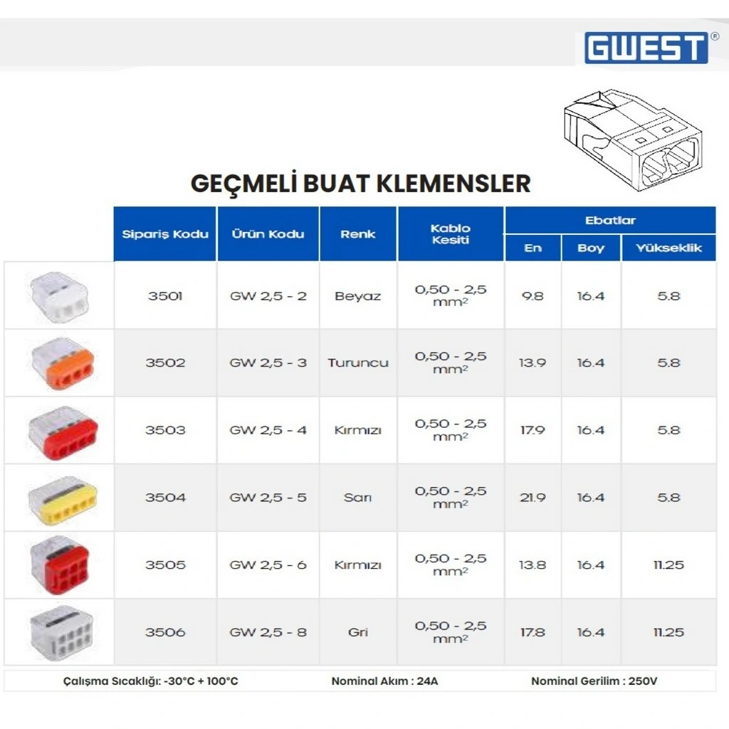 1 Paket Gwest GW-2.5-3 Geçmeli Buat Klemens Turuncu 1 Adet