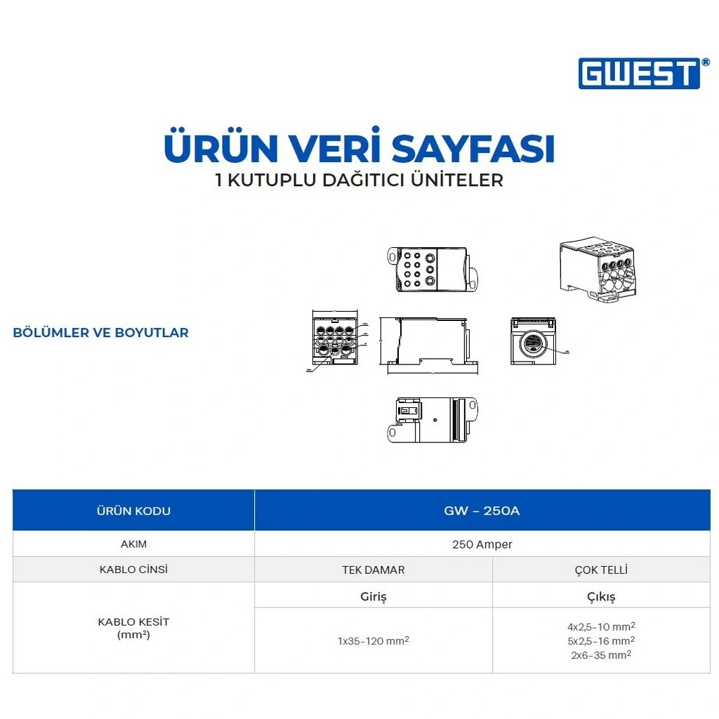 Gwest GW-250A Tek Kutuplu 250A Girişli Dağıtıcı Ünite