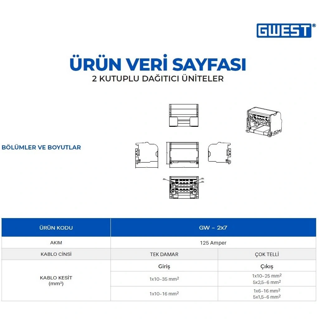 Gwest GW-2x7 2 Kutuplu 125A Girişli Dağıtıcı Ünite