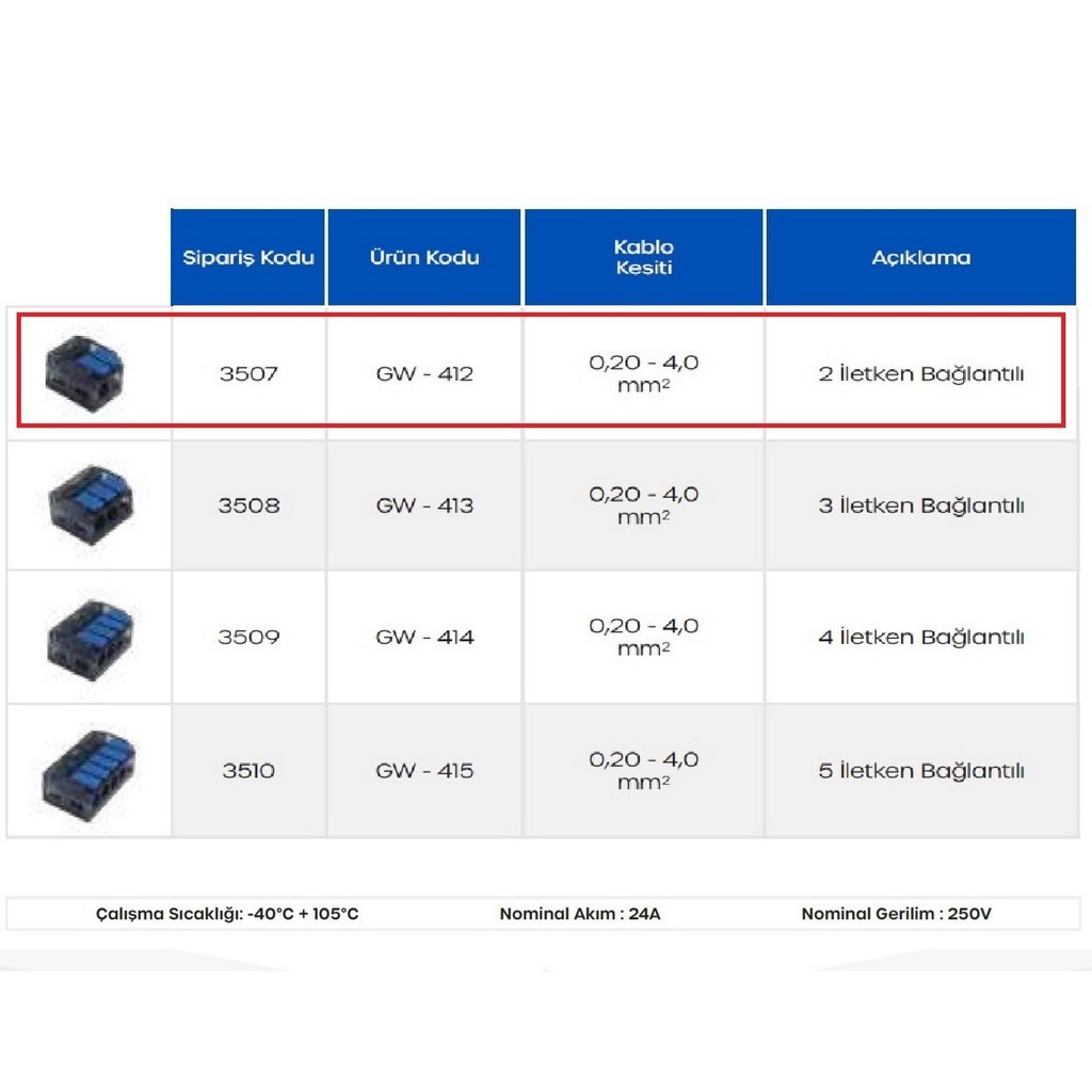 Gwest GW-412 2 İletken Bağlantılı Çok Amaçlı Klemens