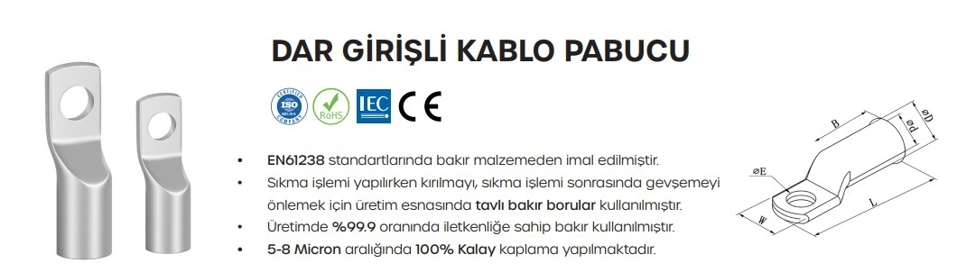 - Ürün Tipi: Dar Girişli Kablo Pabucu