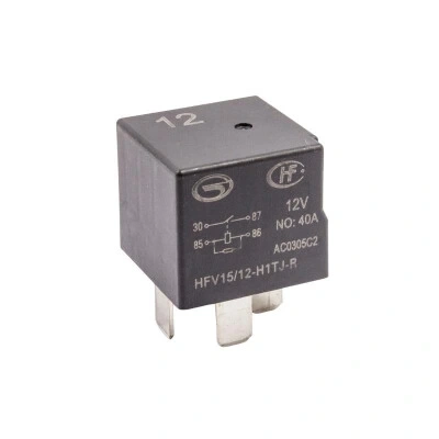 HFV11/12-H-R 12V 40A Otomotiv Rölesi 4-Pin. Genellikle otomotivlerde kullanılan bu röle çeşitli elektronik uygulamalarda kullanılabilmektedir.