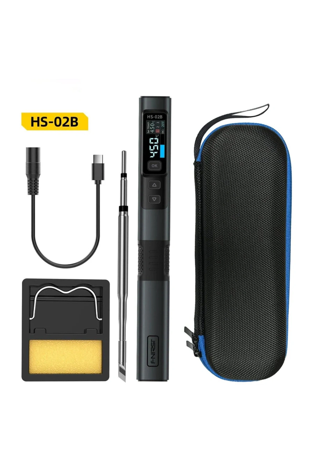 FNIRSI HS-02B, renkli ekran donanımına sahip, yüksek performanslı ve taşınabilir bir akıllı havyadır.