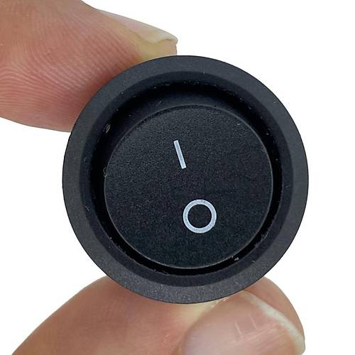 Bu ürün, elektronik cihazlarda kullanılan yuvarlak bir anahtardır ve ON-OFF (Açık-Kapalı) işlevine sahiptir. Siyah renkteki gövdesiyle dikkat çeker. 6 terminal bağlantısına sahiptir ve genellikle çeşitli elektrik devrelerinde kontrol amacıyla kullanılır.