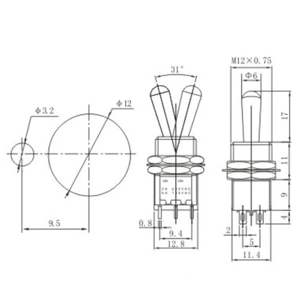 IC-148G Toggle Switch ON-OFF 12mm 6P MTS-202L