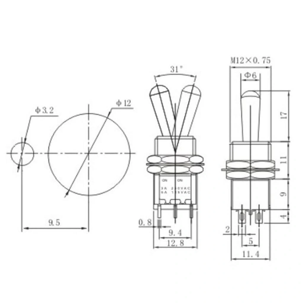 IC-148H Toggle Switch ON-OFF-ON 12mm 6P MTS-203L