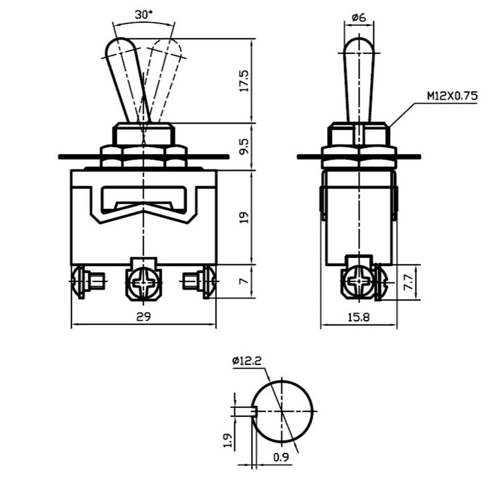 IC-152 Toggle Switch Anahtar 12mm 3P ON-OFF