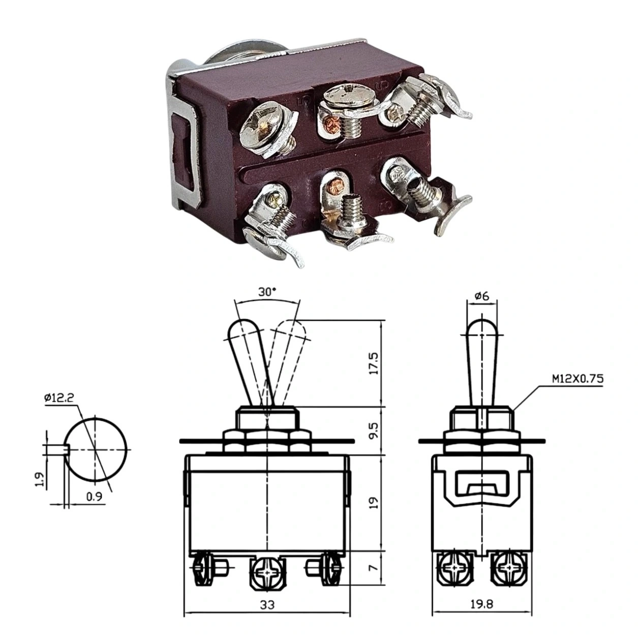 IC-157 Toggle Switch ON-OFF 12mm 6P KN3C-202