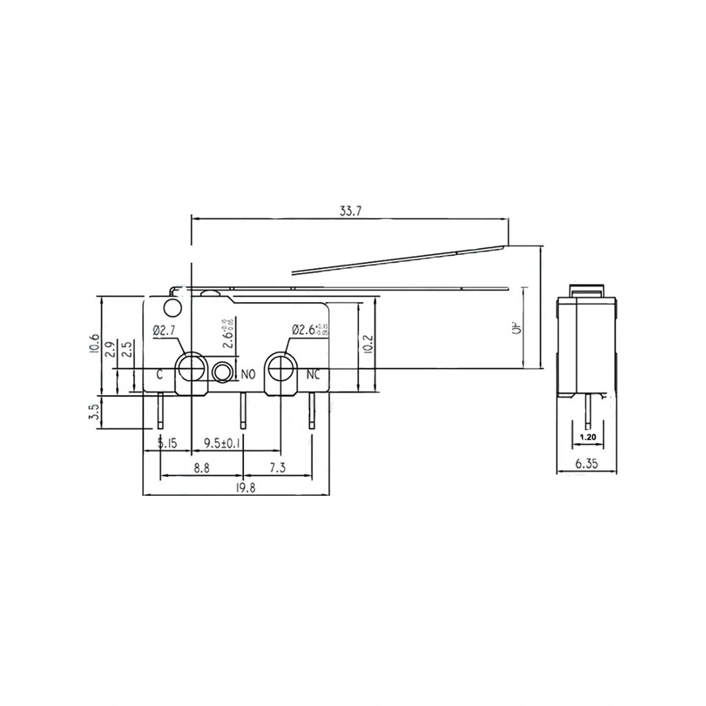 IC-167 Uzun Paletli Micro Switch, hassas algılama ve kolay entegrasyon için tasarlanmış teknik özelliklere sahiptir.