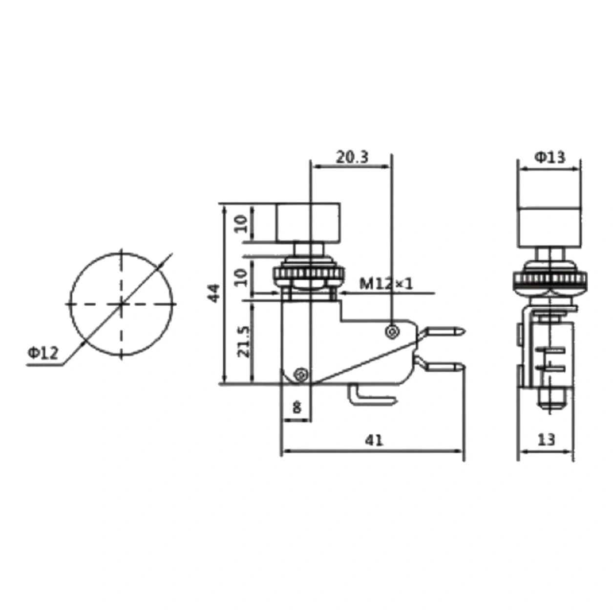 IC-176E mikro switch üzerindeki 12mm buton, kullanım kolaylığı ve ergonomi açısından ideal bir boyut sunar.
