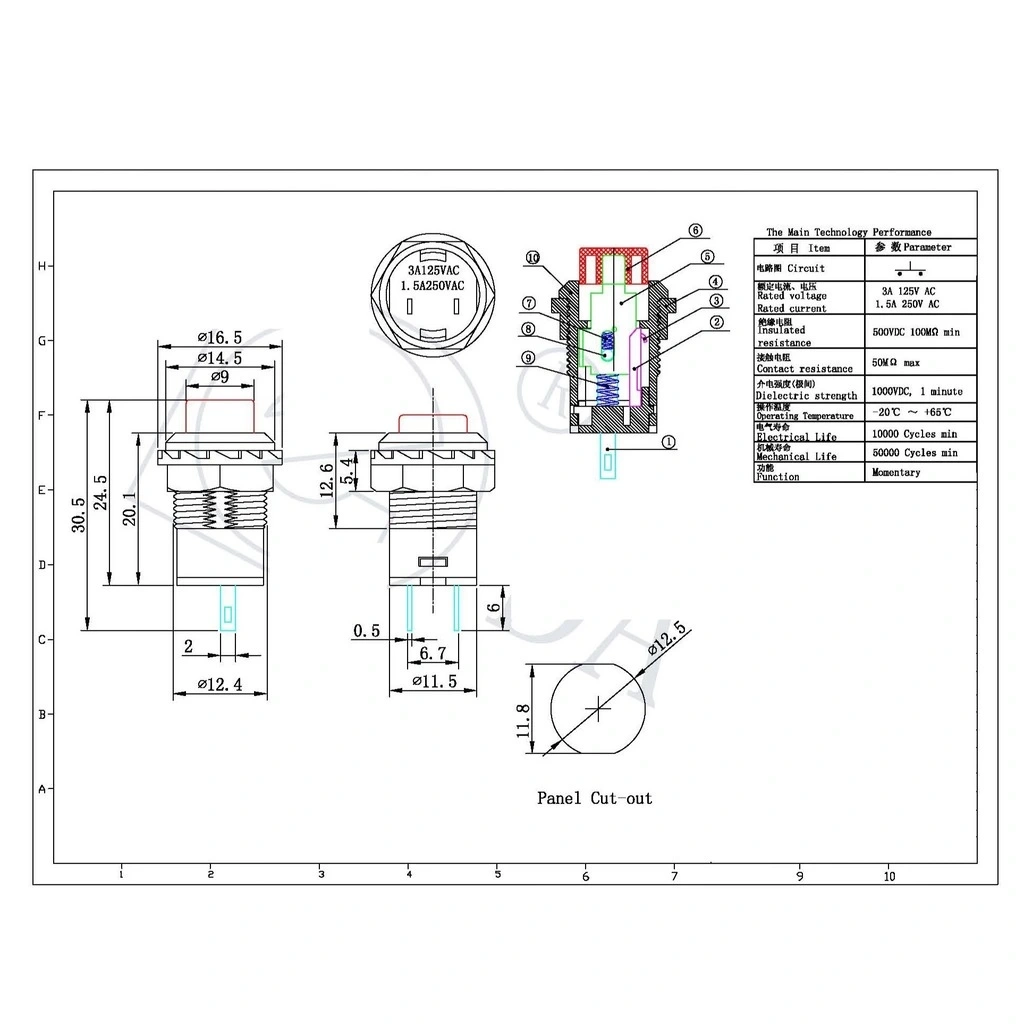 Bu şık gümüş renkli plastik buton, panellere kolay montaj için ideal olup, farklı voltaj ve akım seviyelerinde güvenilir şekilde çalışabilir. Kalıcı kontak (latching) yapısı ile bir kez basıldığında aktif kalır, tekrar basıldığında devre dışı kalır - bu da sürekli basılı tutma gerektirmeyen uygulamalar için mükemmel bir seçenektir.