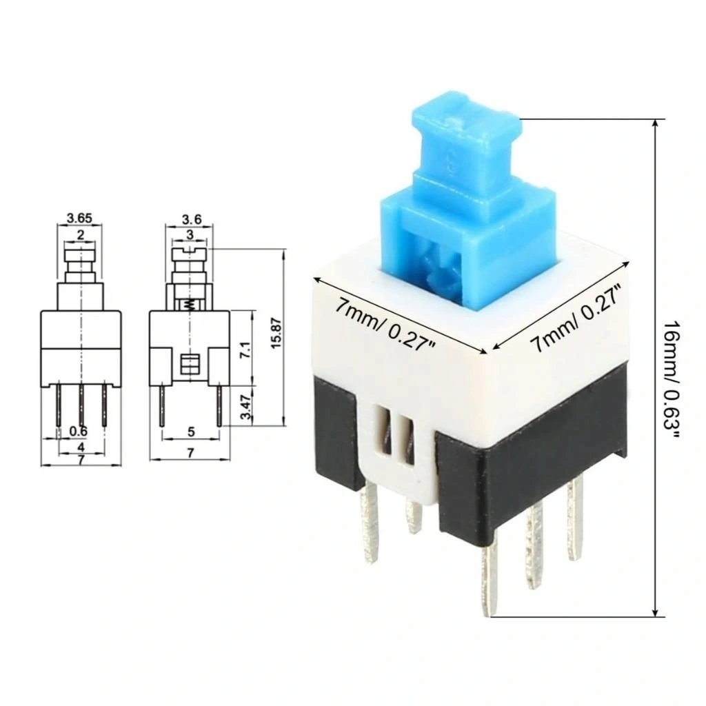 Elektronik projeleriniz için kompakt, sağlam ve güvenilir bir buton arıyorsanız, IC-197 6 Pinli Yaylı Push Buton tam ihtiyacınıza cevap verecektir. 7x7mm boyutlarındaki bu mini taktil switch, PCB montajlı projeler için ideal olup Arduino, Raspberry Pi uygulamaları ve çeşitli elektronik devreler için mükemmel bir çözümdür.