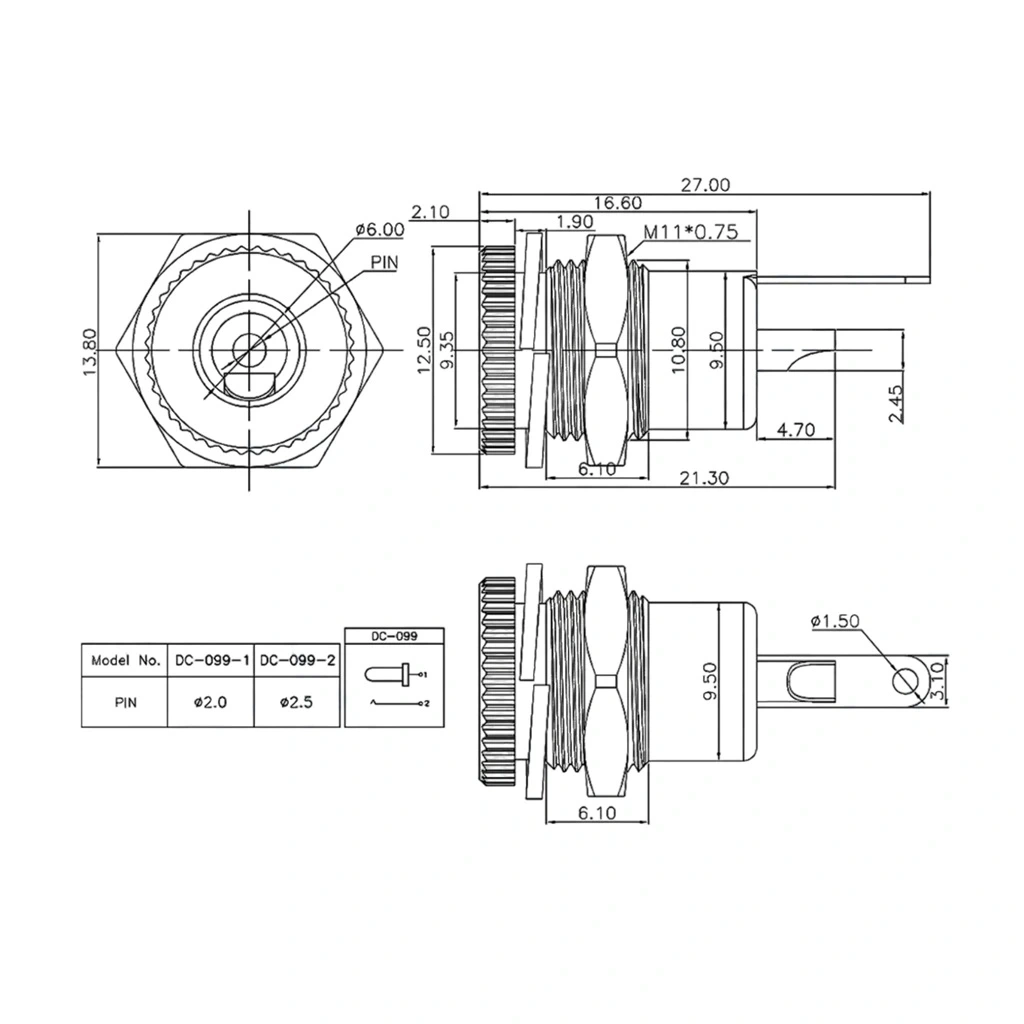 - Çap : 2.1mm