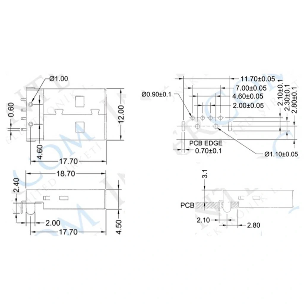 IC-264 USB Şase A Tip 90° Erkek Konnektör'ün PCB tasarımında ve montajında dikkat edilmesi gereken hususlar.