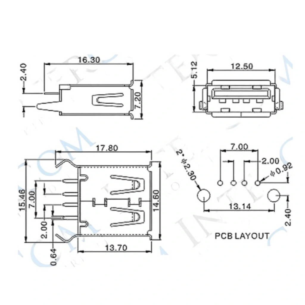 IC-265A USB Şase A Tip 180° Dişi Konnektör'ün PCB tasarımında ve montajında dikkat edilmesi gereken hususlar.