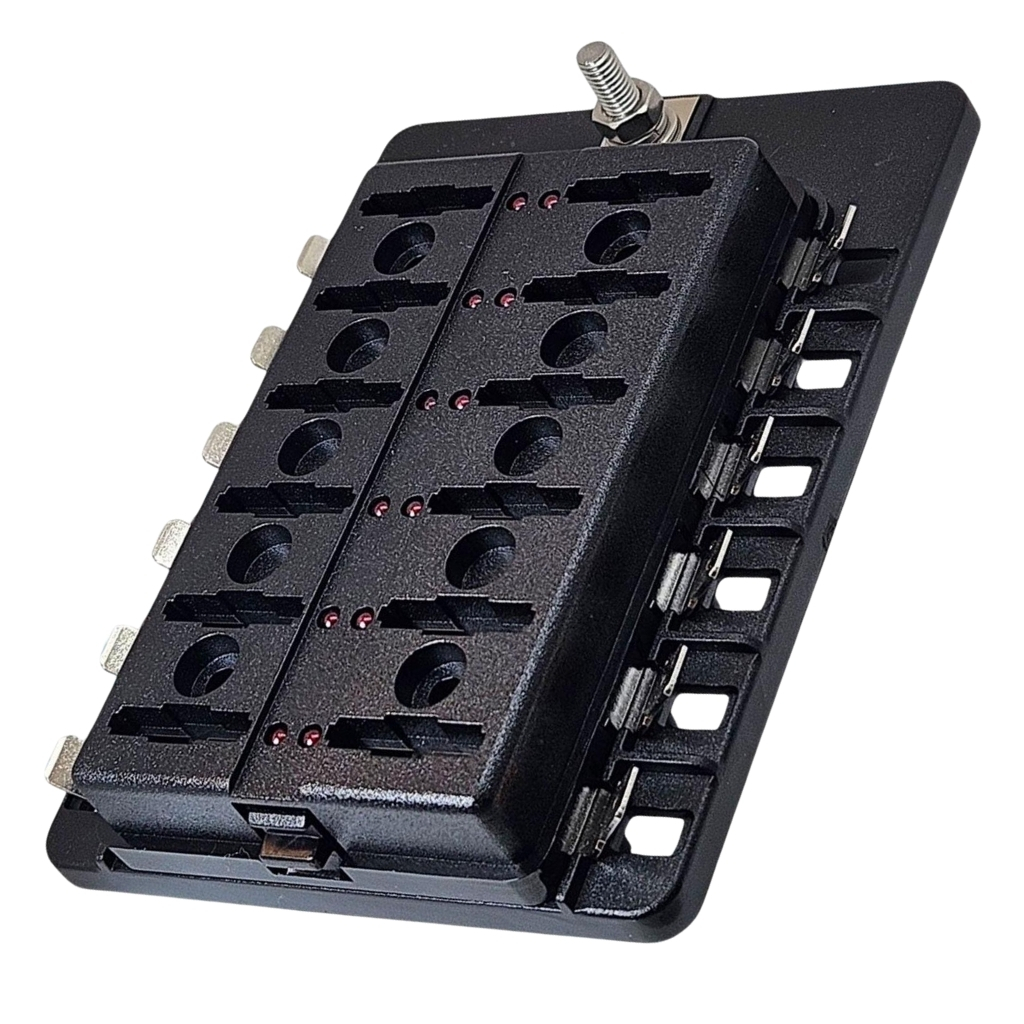IC-276A-12, 12 ayrı devreyi organize etmek ve korumak amacıyla geliştirilmiş, LED ikaz ışıklı, kompakt yapıya sahip bir sigorta dağıtım kutusudur. Her bir çıkış, kısa devre ya da aşırı akım durumunda karşılık gelen LED ile kullanıcıyı görsel olarak uyarır. Otomotiv, denizcilik, güneş enerjisi sistemleri ve özel devre projeleri için ideal bir çözümdür.