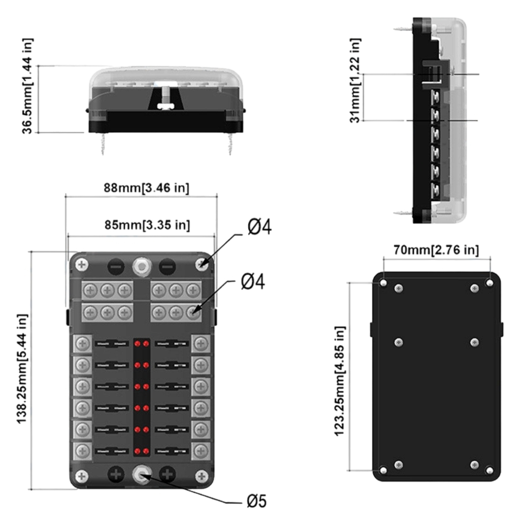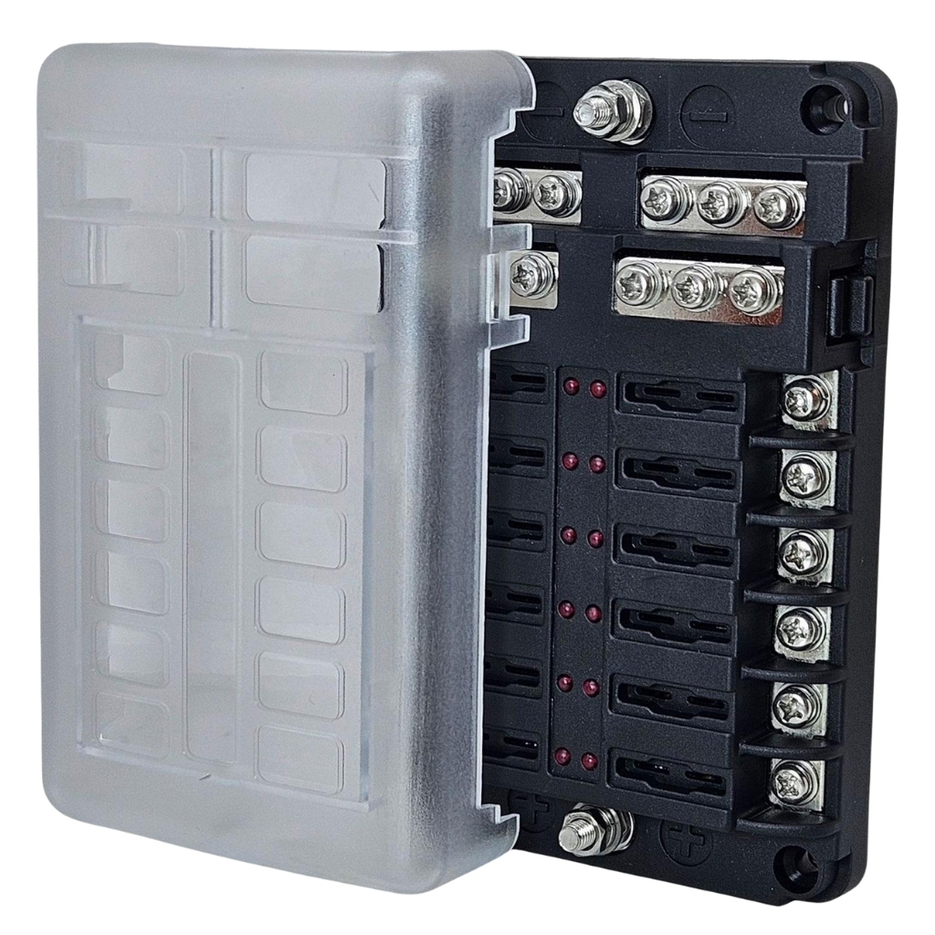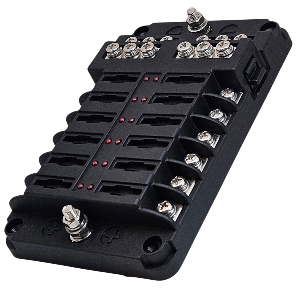 IC-276B-12, 12 ayrı devreyi korumak için tasarlanmış, LED ikaz ışıklı ve şase barel çıkışlı bir sigorta kutusudur. Arıza durumunda sigorta yanarsa, karşılık gelen LED ışık yanarak kullanıcıya görsel uyarı verir. Bu özellik, sorunlu devreyi hızlıca tespit etmenizi sağlar. Otomotiv, karavan, marin ve güneş paneli sistemlerinde kullanım için idealdir.