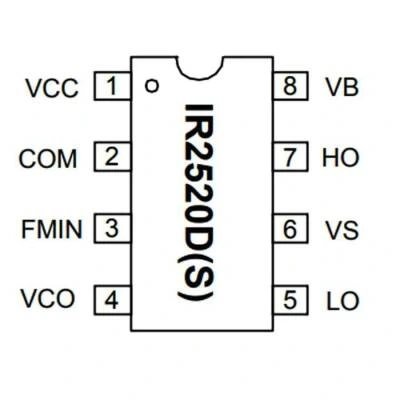 IR2520D(S), floresan aydınlatma uygulamaları için tek bir IC'ye entegre edilmiş eksiksiz bir uyarlanabilir balast kontrolörü ve 600V yarım köprü sürücüsüdür. IC, uyarlanabilir sıfır Voltajlı anahtarlama (ZVS), dahili tepe faktörü aşırı akım korumasının yanı sıra entegre bir önyükleme FET'i içerir. Bu IC'nin kalbi, harici olarak programlanabilir minimum frekansa sahip Voltaj kontrollü bir osilatördür. Gerekli tüm balast özellikleri, küçük bir 8-pin DIP veya SOIC paketine entegre edilmiştir.