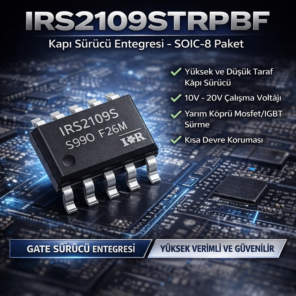 IRS2109STRPBF Kapı Sürücü Entegresi SOIC-8, yüksek verimlilik, güvenli anahtarlama ve kompakt tasarım arayan güç elektroniği uygulamaları için güvenilir ve profesyonel bir çözümdür.