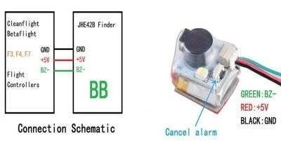 FPV Quadcopter Drone modellerine uygun drone bulucudur. Düşük pil gücü durumunda ve acil durumlarda drone'u takip etmenizi sağlar. 5V 110db buzzer ve 3.7V 75mah lipo pil vardır. Tüm BF ve CF uçuş kontrolleri için uyumludur. Uçuş kontrol cihazının sesli arayüzüne bağlanmanız yeterlidir.