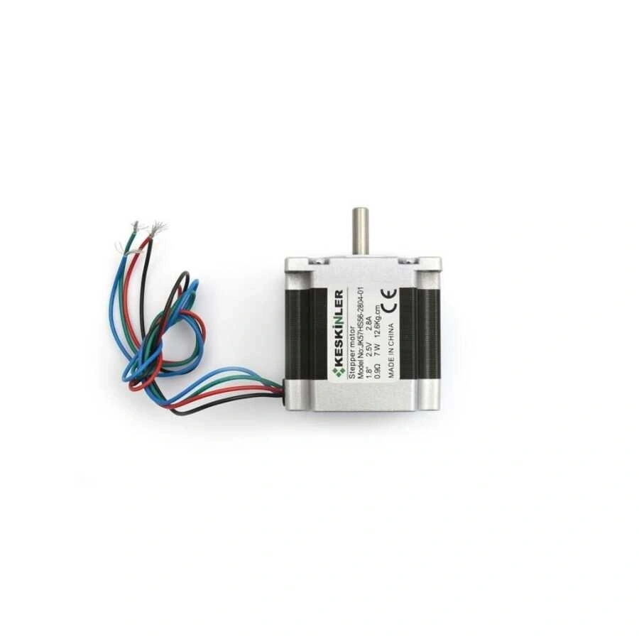 JK57HS56 NEMA23 Step Motor JK57HS56 NEMA23 Step Motor, özellikle hassas konumlandırma gereken projelerinizde, makine imalatında, üretim yaptığınız çeşitli makinelerde kullanabileceğiniz bir motor çeşididir. Teknik Özellikler Faz Sayısı: 2 Açı Değeri: 1.8 derece Voltaj: 2.5V Tepe Akım Değeri: 2.8A Faz Direnci: 0.9 Ohm Tork: 12.6 Kg.cm Ağırlık: 0.7 kg.
