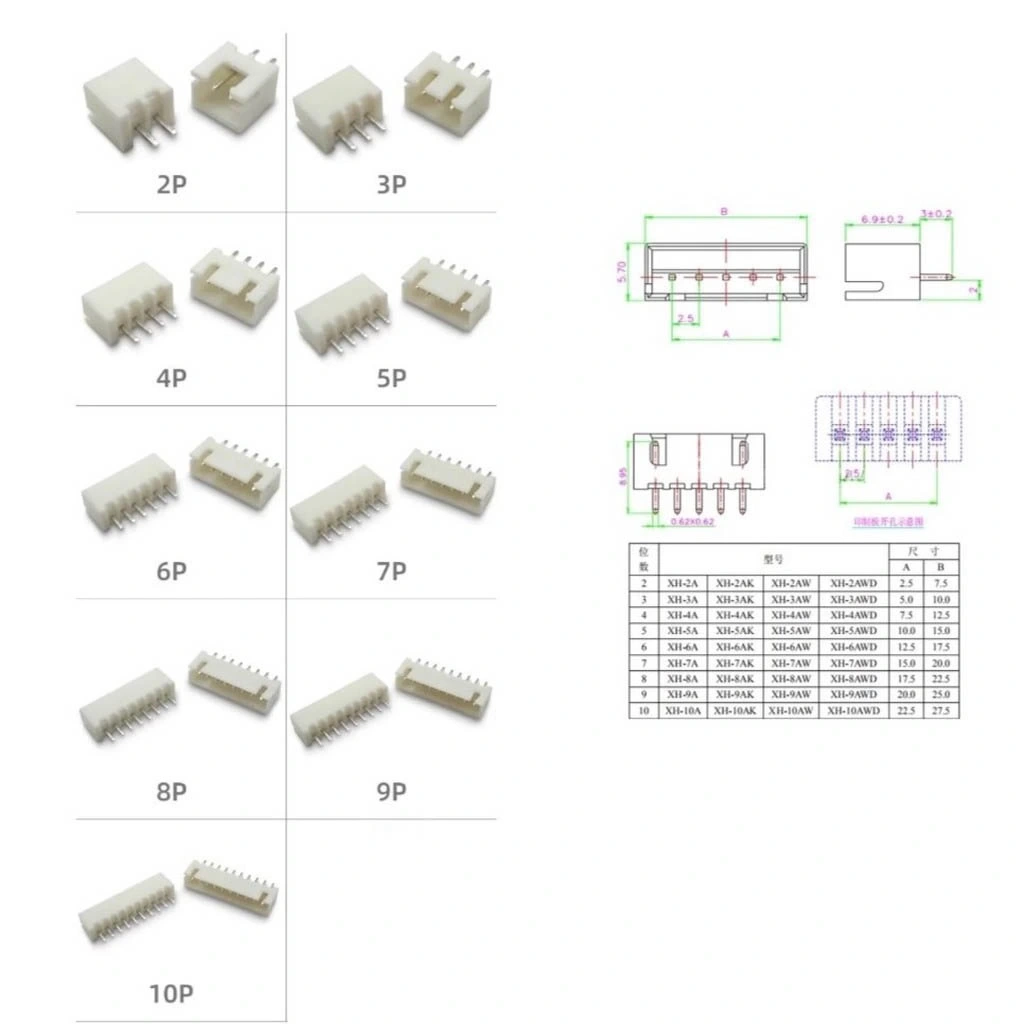 JST XH, 2.54mm pin aralığına sahip, kilitlenebilir mekanizmalı bir konektör türüdür. Elektronik projelerde, batarya bağlantılarında ve düşük güç gerektiren devre bağlantılarında kullanılır.