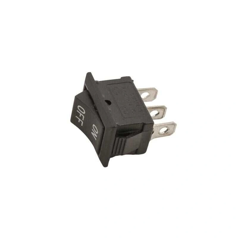 KCD1 3-Pin On-Off Anahtar - Siyah   3 pinli iki konumlu on off rocker anahtar çeşididir. Elektronik cihazlarda, ev aletlerinin kontrolünde yaygın olarak kullanılır.   Türü: On-Off Rocker Switch Renk: Siyah Boyutları: 21x15mm Yuva Boyutu: 19x12mm Terminal: 3 pin Akım / Gerilim: 6A / 250V AC - 10A / 125V AC.