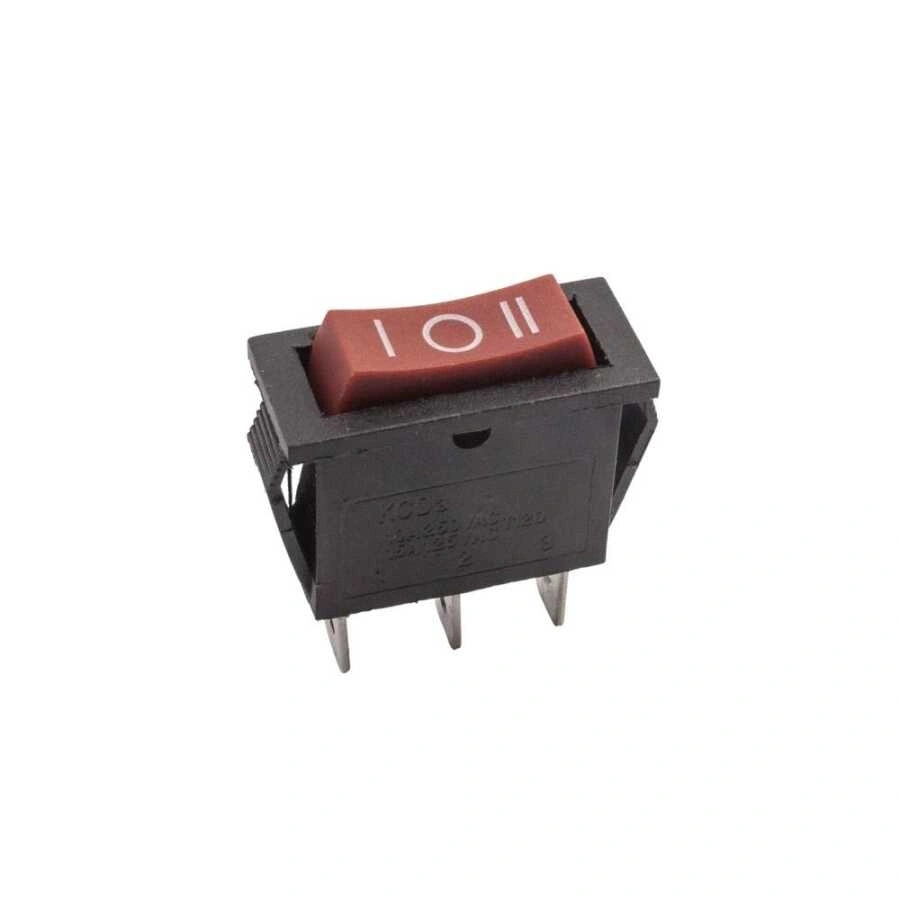 KCD3 Üç Konumlu On/Off/On Anahtar - Kırmızı 3 pinli on-off-on rocker anahtar çeşididir. Elektronik cihazlarda, ev aletlerinin kontrolünde yaygın olarak kullanılır. Türü: On-Off Rocker Switch Renk: Siyah Boyutları: 32x14mm Yuva Boyutu: 30x12mm Terminal: 3 pin Pim aralığı: 10mm Akım / Gerilim: 10A / 250V AC.