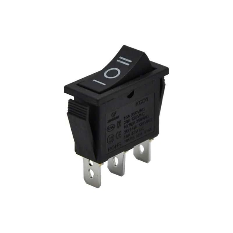 KCD3 Üç Konumlu ON-OFF-ON Anahtar 3 pinli On Off On rocker anahtar çeşididir. Elektronik cihazlarda, arabalar, motosikletler, otobüsler, tekneler, denizcilik, römorklar, ev aletlerinin kontrolünde yaygın olarak kullanılır. Türü: On-Off-On Rocker Switch Terminal: 3 pin Akım / Gerilim: 16A / 250V AC - 20A / 125V AC.